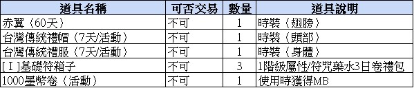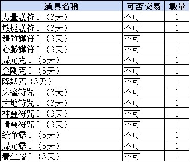 ● 於各伺服器首次登入時,每個帳號限領一次,自動發送至百寶箱倉庫。