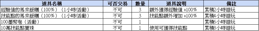 ● 獎勵對象:每日遊戲累積時間 2~12 小時的玩家
