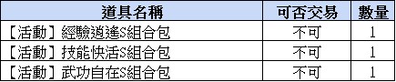 ●【活動】經驗逍遙S組合包] 道具內容物 :
