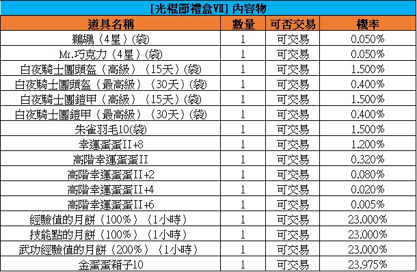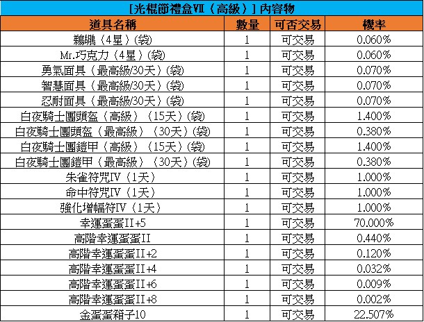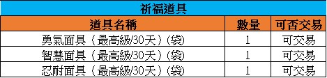 當祈福值達到最大值時,必定可獲得其中一個祈福值道具。 |